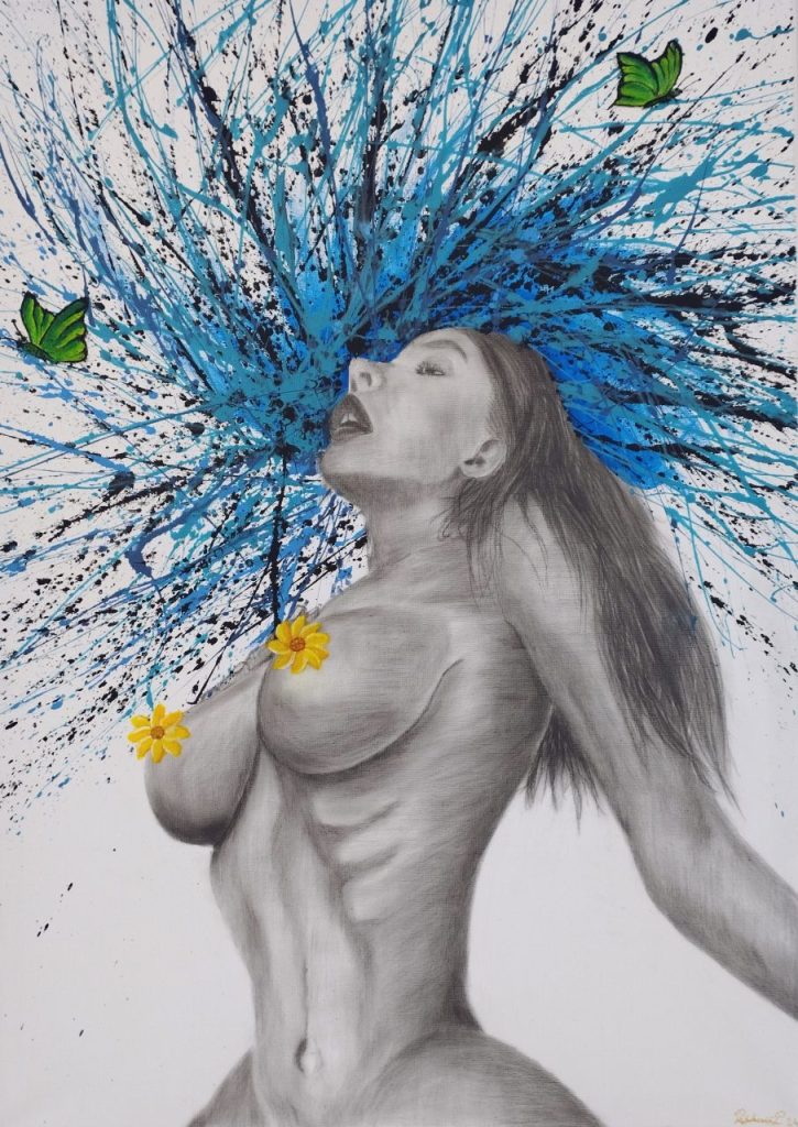 Obrazy sú malované akrylom na plátno natiahnuté na ráme.